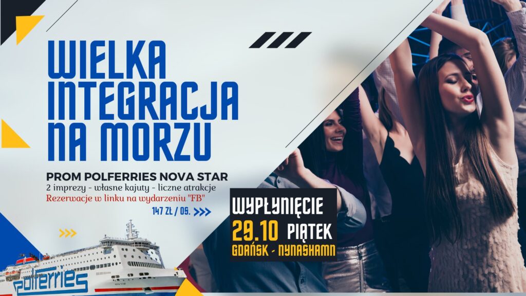 Zapraszamy na największą integrację na morzu vo.2❗️ 🌊 Już 29 października wypłyniecie z nami w imprezowy rejs pełen przygód i wspaniałych atrakcji 🙈🙉🙊 Kierujemy się z portu w Gdańsku do portu w Nynashamn❗️
