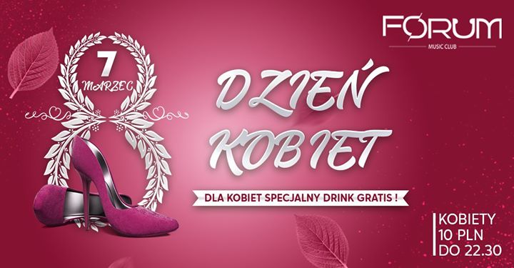 • 7.03.20 • Dzień kobiet – Free drink – Do 22:30 kobiety 10 PLN