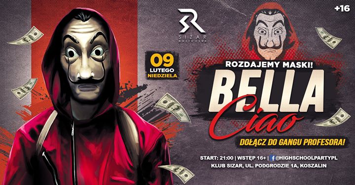 Tego dnia w Sizar możesz dołączyć do gangu Profesora i poczuć się jak członek ekipy, a później… Jeśli chcecie się dowiedzieć co dalej, koniecznie odwiedźcie nasz klub 9 lutego. Zdradzimy Wam tylko że rozdamy maski znane z serialu, a z wyrzutni poleci konfetti z kasą 😀