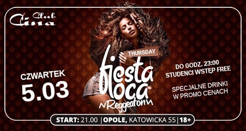 ★ Fiesta Loca ★ ☛ czwartek 5.03 ☛ do godz. 23:00 studenci free