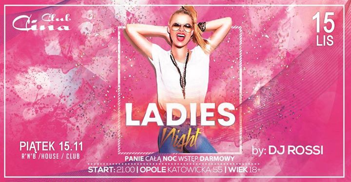 Ladies Night to kultowy cykl piątkowych imprez, na który zapraszamy wszystkie Panie! Tej nocy oddajemy klub w Wasze ręce ! A więc Ladies – pokażcie jak to się robi !!! Zakładajcie szpilki, bierzcie koleżanki i pokażcie jak w piątkową noc bawią się kobiety !