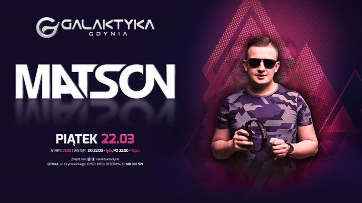 Z ogromną przyjemnością pragniemy zaprosić Was na niepowtarzalne wydarzenie. W piątek 22 marca za konsolą stanie jeden z najpopularniejszych djów w Polsce, MATSON!