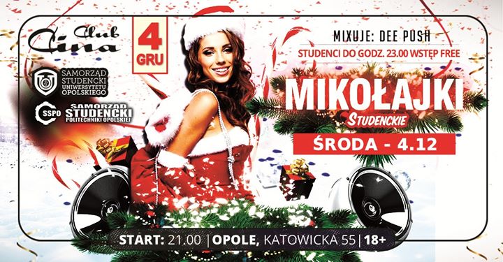 Kto był grzeczny dostanie rózgę, niegrzeczni dostaną prezent od naszego imprezowego Mikołaja 🎅🏻 🎁 Wraz z Samorządami Studenckimi Uniwersytetu Opolskiego i Politechniki Opolskiej zapraszamy w środę 4 grudnia na Mikołajki studenckie w Cina Club – worek pełen prezentów czeka na Was 🎁 ☃️