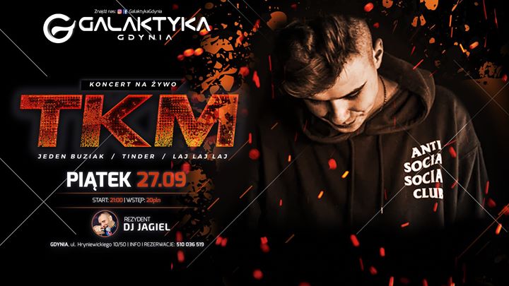 W piątek 27 września w naszym klubie wystąpi młody, utalentowany raper o pseudonimie TKM! Twórca hitowego „TINDER”, które na YouTube słuchało już prawie 18 milionów słuchaczy 🙏