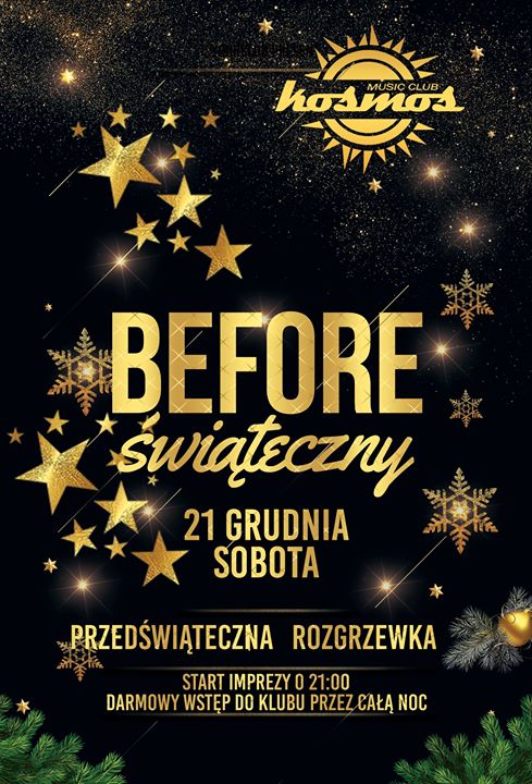 Impreza w pierwszy dzień świąt to sprawa oczywista, ale możesz przygotować się do niej robiąc przedświąteczny biforek w Klubie Kosmos. Celebruj święta! Zabierz znajomych, wpadnij do Nas, przybij 5 z barmanem. Przyjemne i tanczne housowo-dancowe brzmienia zapoda dj Fresco.