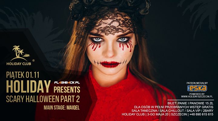 Czas na najstraszniejszy długi weekend tego roku. Począwszy od czwartku 31 października, przez 3 noce Holiday Club zmieni się nie do poznania. Królować będą barwne stroje naszych gości, oraz załogi klubu, które przeniosą nas do świata Horroru. Zwieńczeniem weekendu będzie sobotnia noc i goście specjalni, którzy pojawią się w klubie. Pierwszy to Guest 69. Doskonały Szczeciński Dj i wielbiciel skrupulatnie wyselekcjonowanych brzmień, z tych nieco bardziej elektronicznych gatunków. Drugim gościem będzie doskonale znany stałym bywalcom Holiday, Baal. Wirtuoz instrumentów perkusyjnych. Do tego nie zabraknie naszych rezydentów, którzy zawsze dzielnie stoją na straży dobrego klimatu.