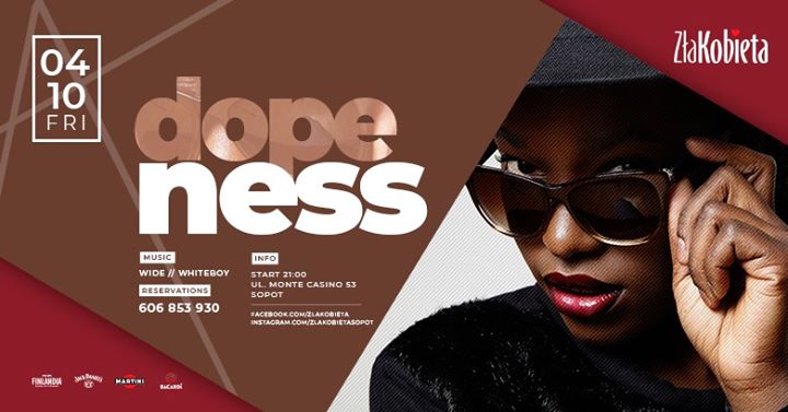 Niesamowicie, nadzwyczajnie, wyjątkowo, świetnie, niezwykle, niespotykanie, fantastycznie, nieziemsko, wspalanie. Dopeness można tłumaczyć różnie, ale zrozumieć można tylko w jeden sposób – odwiedzając w ten piątek Złą Kobietę. Dwóch niesamowitych DJ-ów, świetna selekcja tanecznej muzyki, wyjątkowa obsługa za barem, nadzwyczajna atmosfera. Przymiotniki można mnożyć i łączyć je z różnymi atrakcjami, które serwujemy – ale doświadczyć ich wszystkich naraz można tylko na tej imprezie. I to jest naprawdę dope. Zresztą, przekonacie się sami. Wiemy, że nie omieszkacie sprawdzić.