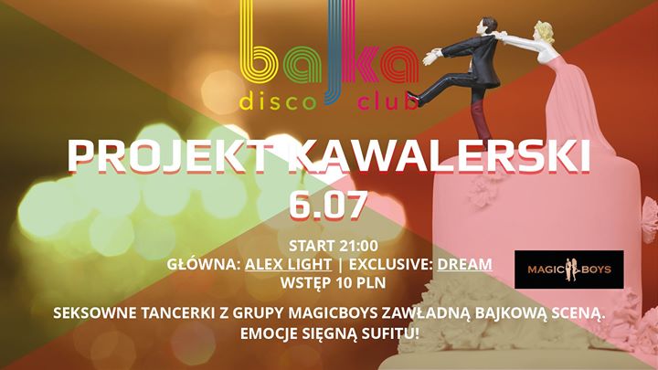 Zapraszamy w sobotę do Bajki na naszą cykliczną imprezę: projekt kawalerski. Seksowne tancerki z grupy Magic Boys zawładną Bajkową sceną. Emocje sięgną sufitu! Kierunek –> Piłsudskiego 34!