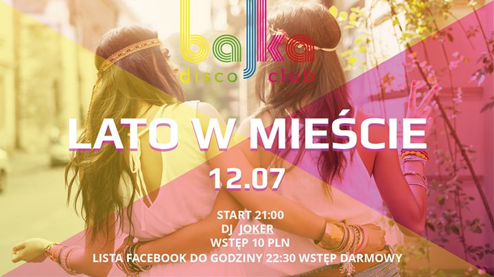 Zapraszamy do Bajki na wakacyjne piątki: lato w mieście. Każda osoba potwierdzająca udział w wydarzeniu do godziny 22:30 może wejść do nas za darmo. Kierunek –> Szeroka 19.