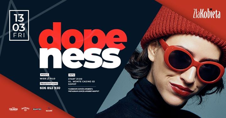 Niesamowicie, nadzwyczajnie, wyjątkowo, świetnie, niezwykle, niespotykanie, fantastycznie, nieziemsko, wspalanie. Dopeness można tłumaczyć różnie, ale zrozumieć można tylko w jeden sposób – odwiedzając w ten piątek Złą Kobietę. Dwóch niesamowitych DJ-ów, świetna selekcja tanecznej muzyki, wyjątkowa obsługa za barem, nadzwyczajna atmosfera. Przymiotniki można mnożyć i łączyć je z różnymi atrakcjami, które serwujemy – ale doświadczyć ich wszystkich naraz można tylko na tej imprezie. I to jest naprawdę dope. Zresztą, przekonacie się sami. Wiemy, że nie omieszkacie sprawdzić.