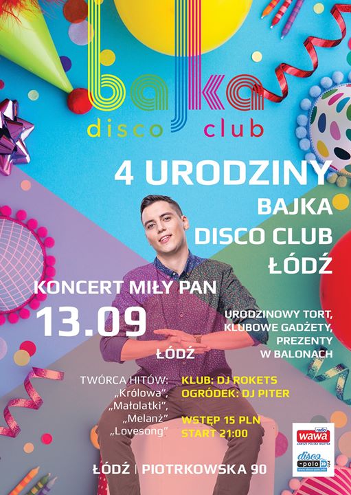 13.09 – KONCERT MIŁY PAN x 4 URODZINY BAJKA DISCO CLUB ŁÓDŹ