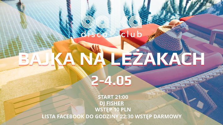 Majówka na leżakach? Taka świetna imprezowa opcja pojawi się dla Was oczywiście w Bajka Disco Club przez 3 noce 2 -3 oraz 4 maja. Nasz klub zamieni się w prawdziwą wyspę leżaków. Dobiegać do Waszych uszu będzie wyborna muzyka a nasi barmani zaspokoją wszystkie pragnienia. Do zobaczenia na Szerokiej 19. Za deckami DJ Fisher.