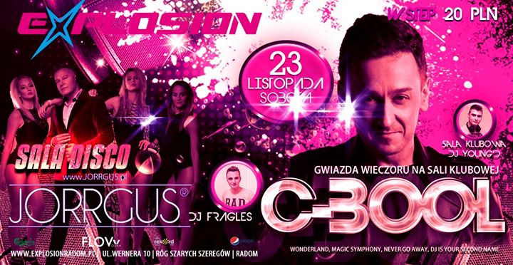 W sobotę 23.11 gwiazdą wieczoru po raz pierwszy w EXPLOSION będzie C-BOOL !!!