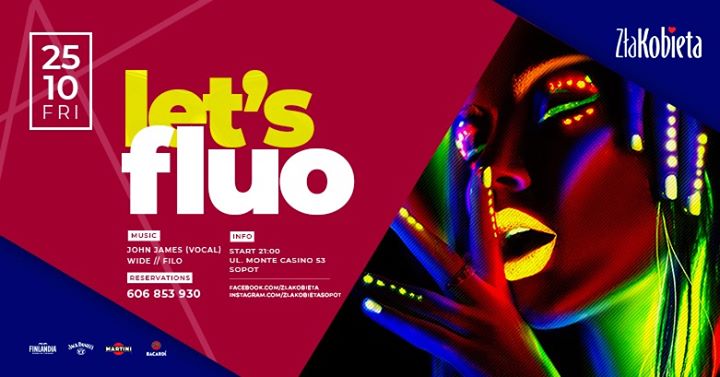 Za oknem smutny, jesienny zestaw kolorów. My w ten wyjątkowy, piątkowy wieczór zmieniamy paletę barw na bardziej otymistyczną. Będzie kolorowo, będzie jaskrawo i mocno świecąco, będzie fluo! Spodziewajcie się nie tylko nietypowego wystroju, ale i prawdziwej muzycznej bomby. John James na wokalu oraz Wide i Filo za sterami, to nie może się nie udać! Widzimy się w piątek.