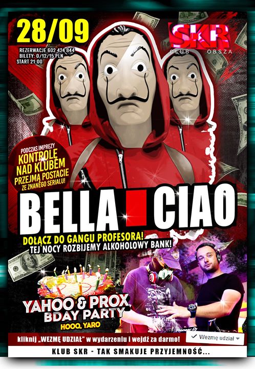 28/09 ✪ BELLA CIAO – Dołącz do Gangu! ✪ Yahoo & Prox B-Day Party