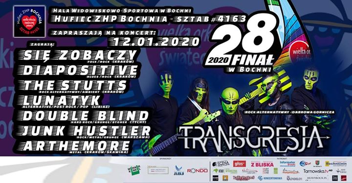 Bocheński Sztab ZHP Wielkiej Orkiestry Świątecznej Pomocy ma zaszczyt zaprosić serdecznie na koncert z okazji 28 Finał WOŚP w Bochni. W ramach tego koncertu wystąpi kilka znakomitych zespołów, a także odbędą się wydarzenia towarzyszące, min. gry w planszówki, animacje dla dzieci, pokazy ratownictwa, pokazy akrobatycznej jazdy na rowerze w wykonaniu młodego adepta tej sztuki.