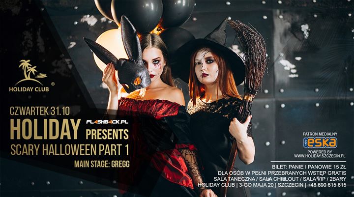 Czas na najstraszniejszy długi weekend tego roku. Począwszy od czwartku 31 października, przez 3 noce Holiday Club zmieni się nie do poznania. Królować będą barwne stroje naszych gości, oraz załogi klubu, które przeniosą nas do świata Horroru. Zwieńczeniem weekendu będzie sobotnia noc i goście specjalni, którzy pojawią się w klubie. Pierwszy to Guest 69. Doskonały Szczeciński Dj i wielbiciel skrupulatnie wyselekcjonowanych brzmień, z tych nieco bardziej elektronicznych gatunków. Drugim gościem będzie doskonale znany stałym bywalcom Holiday, Baal. Wirtuoz instrumentów perkusyjnych. Do tego nie zabraknie naszych rezydentów, którzy zawsze dzielnie stoją na straży dobrego klimatu.