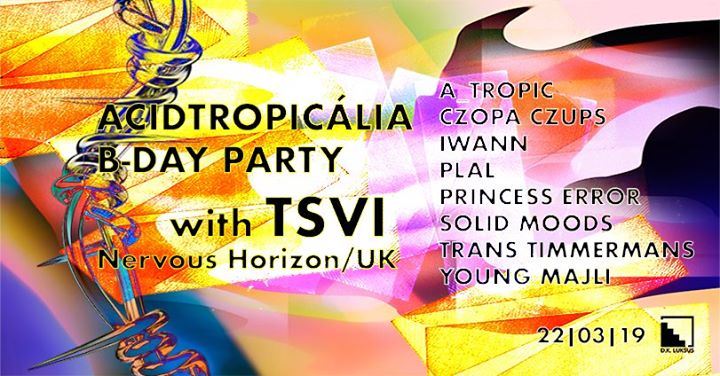 Świeżo po tegorocznych występach na berlińskim CTM Festival oraz specjalnej edycji (Bass & Percs Special) Boiler Room za deckami w dużej klubowej przestrzeni D.K Luksus zagra TSVI – współtwórca londyńskiej wytwórni Nervous Horizon oraz najgorętszy obecnie hard drumowy zawodnik w skali globu. Oprócz TSVI wystąpi Acidtropicaliowa guerilla w najmocniejszym składzie oraz przyjacielski support w postaci: Young Majli, Plal oraz Czopa Czupsa. Wisienką na torcie stanowić będą wizualizacje stworzone przez artystkę wizualną i dźwiękową – Sylwię Słowik.