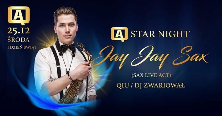 Pamiętajcie że przez całe święta jesteśmy z Wami! W pierwszy dzień świąt przygotowaliśmy dla Was wyjątkową świąteczną bombkę! Odpalamy AQ Star Night! Imprezę będą napędzać DJ Qiu i DJ Zwariował! Dodatkowo magiczne rytmy tej imprezy będą podkreślać saksofonowe brzmienia, które zapewni Wam Jay Jay Sax! Tej imprezy nie możecie ominąć! Do zobaczenia!