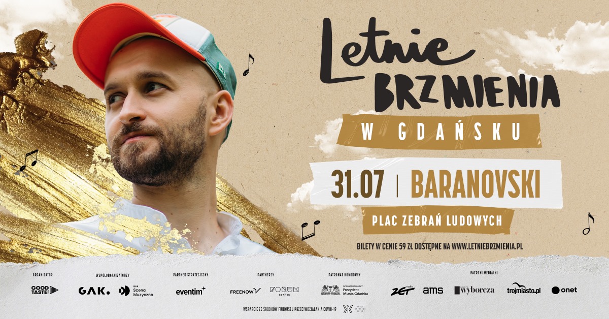 Jak już wiecie, zaplanowany na 7.02.2021 r. koncert Baranovskiego w Krakowie został przeniesiony na 6.08.2021 r. Koncert odbędzie się w plenerze. Z przyjemnością i ogromnym podekscytowaniem informujemy, że wydarzenie zostaje częścią cyklu koncertów Letnie Brzmienia. Program koncertu pozostaje bez zmian.
