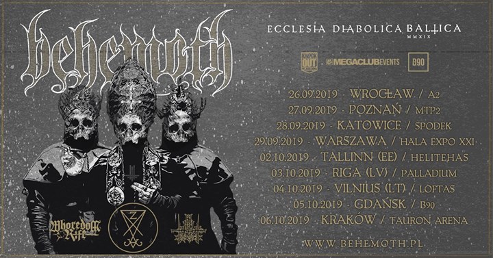 Choć Behemoth większość koncertów gra poza Polską, swego rodzaju tradycją stało się, że jesienią lub wczesną zimą zespół prezentuje swoją imponującą produkcję polskim fanom. Nie inaczej będzie w 2019 roku. Wtedy właśnie odbędzie się trasa kapeli, która obejmie sześć koncertów w dużych miastach, w doborowym zestawie. Niewykluczone, że w setliście znajdzie się „Chant for Eschaton 2000” z płyty „Satanica”, utwór, który serwis Loudwire zaliczył do 50 metalowych utworów, jakie zdefiniowały rok 1999. Przygotujcie się na niezapomniane przeżycie.