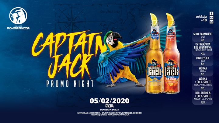 W środowy wieczór Captain Jack wzywa całą imprezową załogę Śląska, Zagłębia i całej Polski Południowej na swój okazały okręt!