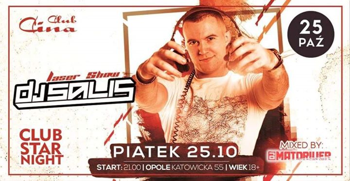 Już w najbliższy piątek 25 października w Cina Club gość specjalny – znany polski producent muzyczny – DJ SALIS. Od 12 lat na rynku muzycznym, w 2012 Mistrz Polski DJ’ów, rozpoznawalny dzięki charakterystycznemu stylowi, w którym usłyszycie pełno zwrotów akcji, szybkich przejść oraz ciekawostek technicznych. Dodatkowo zapraszamy na jedyny w swoim rodzaju profesjonalny POKAZ LASERÓW. Naszego gościa supportuje rezydent klubu Cina: DJ Matdriver.