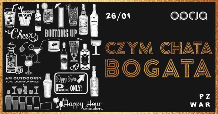 Ktoś mówił „od jutra nie piję”? A to szkoda, bo tego wieczoru u nas czym chata bogata! Do godz. 01:00 happy hour na calutki bar – tniemy ceny o 50%. Więc jak, postanowienie może poczekać? ?