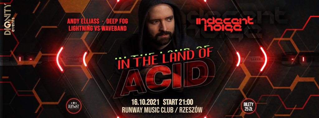 Witamy i serdecznie zapraszamy na kolejną edycje „Dignity Events” pod tytułem „In The Land Of Acid” 16 październik, sobota,RZESZÓW.
