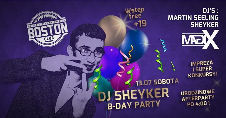 Jak zapowiadaliśmy lipiec szykuje się ciekawie! Z okazji urodzin naszego DJ-a Sheykera zapraszamy wszystkich do wspólnego świętowania już w sobotę 13.07 😀