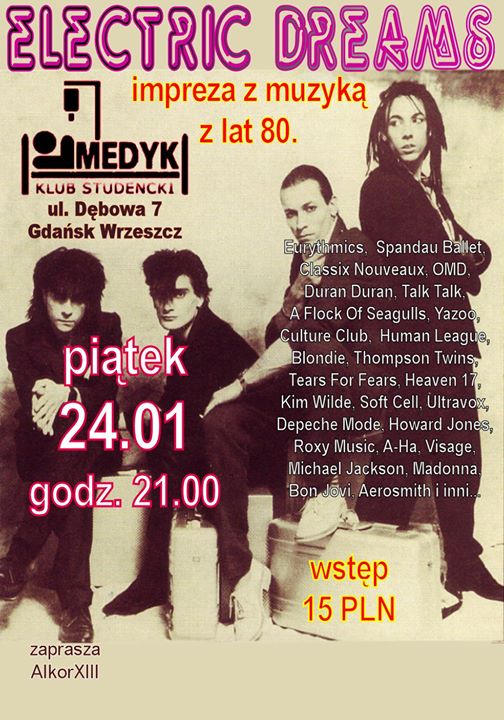 To od Was zależeć będzie jakie rytmy przeważać będą tym razem. Czy będzie to New Romantic, jak to ostatnio bywało, pop spod znaku Madonny i Jacksona, czy może tym razem przeważą długie kudły „pudelmetalowców”? Zagłosujecie oczywiście nogami, Waszą obecnością na parkiecie, ale liczyć się będą również propozycje muzyczne tutaj (i w czasie imprezy w możliwym do spełnienia stopniu) składane.