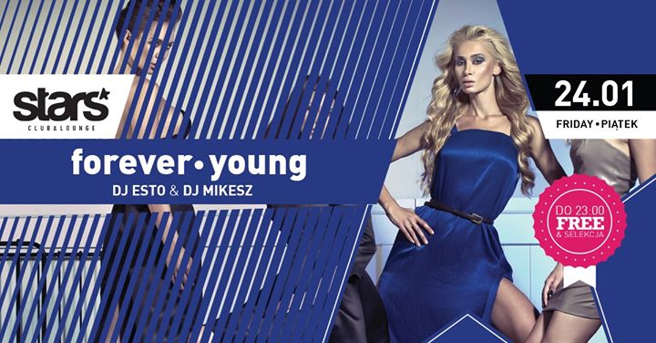 Zapraszamy na kolejną odsłonę FOREVER YOUNG – kultową już imprezę, podczas której legendarne brzmienia lat ’80 i ’90 splatamy z najnowszymi klubowymi trendami tworząc niesamowitą atmosferę na naszym gwiezdnym parkiecie!