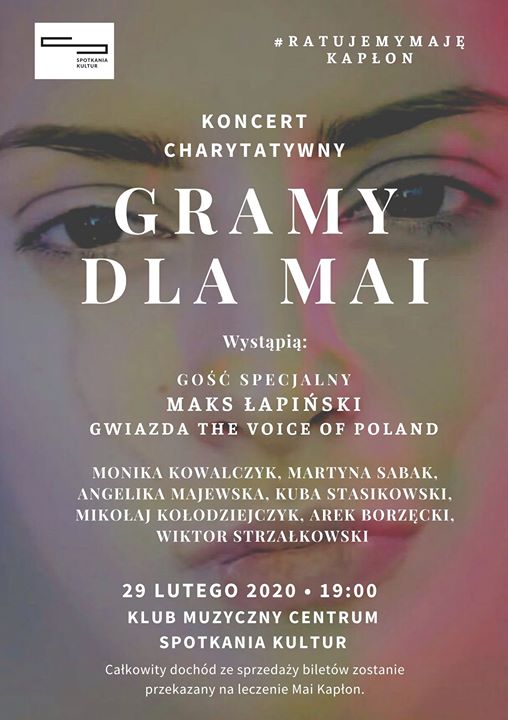 Całkowity dochód ze sprzedaży biletów zostanie przekazany na leczenie Mai Kapłon.