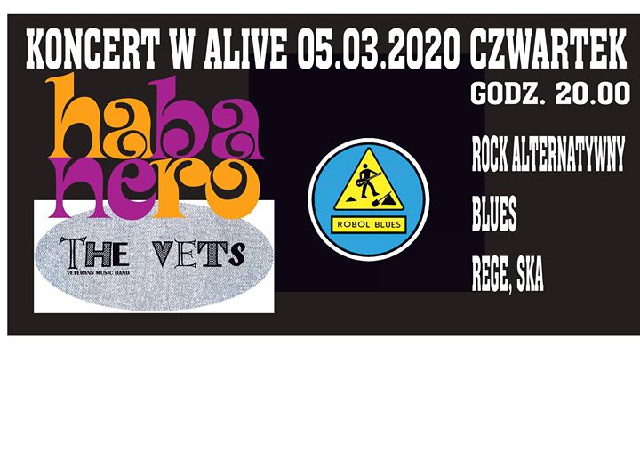 Vetsi czyli weterani ostatnio grali w Alive w listopadzie ub. roku. Tym razem brzmienie b dzie bardziej ł ę wzmocnione saksofonem Oli. Sk ad stabilny czyli znani z punkowych scen Arturro (Dobra Dobra) i Pajdo (Zw oki, Stan Oskar enia), ł ł ż nowofalowych Borys (BramboryAZelenina), Marek (The Less) plus charyzmatyczny Voytek na wokalu (ex-Sakra), ostry trashmetalowy Bartek na garach i spokojny Damian na klawiszach. Program to tradycyjnie oryginalna mieszanka ska, punk i reggae.