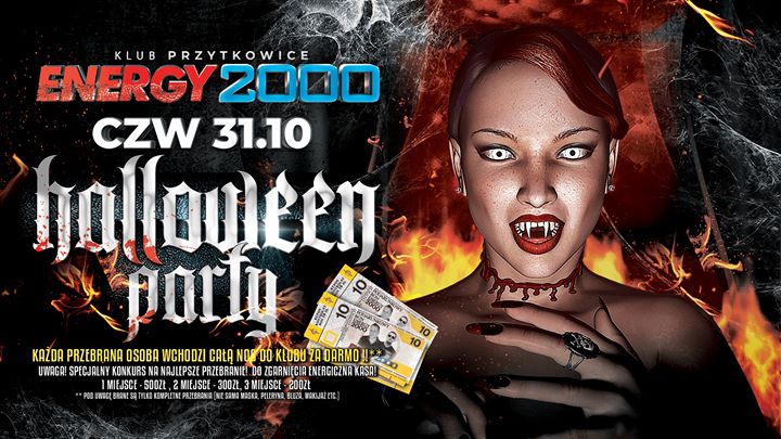 Jeśli lubisz się bać i fascynują Cię horrory, thrillery i straszne opowieści, to mamy coś co na pewno Ci się spodoba… mroczne i przeraźliwe HALLOWEEN NIGHT – czyli Noc Grozy!!! W CZWARTEK – 31 października przytkowickie Energy 2000 nawiedzą zombie, wampiry, wilkołaki, czarownice i inne potwory.