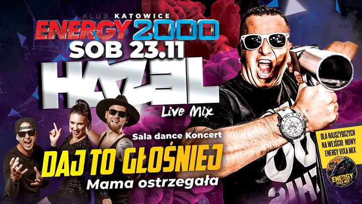 Sobotnią imprezę 23 listopada czeka na Was muzyczne show prawdziwej legendy polskiej sceny klubowej – DJ HAZEL to najpopularniejszy polski dj, mistrz konsolety, znany ze swoich energetycznych setów i perfekcyjnej techniki miksowania, często reklamowany jako „najszybsze ręce Europy”. Ale to nie wszystko co wydarzy się tej wyjątkowej nocy…. Oprócz muzycznego show Hazela, spodziewajcie się najgłośniejszego koncertu na sali DANCE! Zespół DAJ TO GŁOŚNIEJ z mega hitem „MAMA OSTRZEGAŁA”!