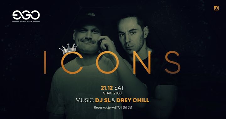 Icons- impreza przedstawiająca najbardziej rozpoznawalne postacie naszego klubu. Dla Was, naszych gości, zawsze najważniejsi są dj-e i muzyka, jaką wypuszczają dla Was z głośników. W ten dzień możecie liczyć na najlepsze brzmienia od DJ SL oraz Drey Chill