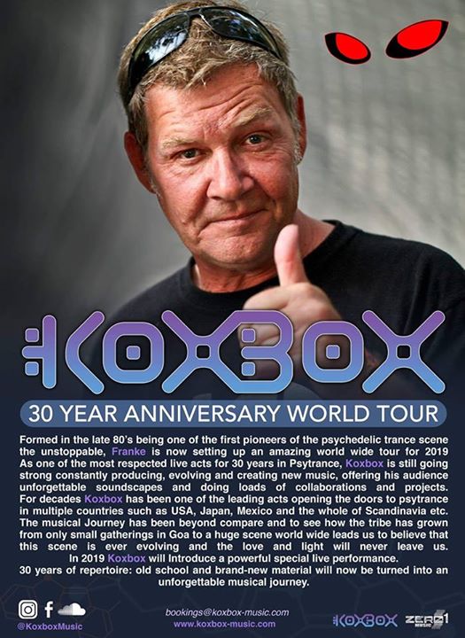 Be psychedelic, Acid Orange Crew oraz Bunkier mają wielki zaszczyt zaprosić Was na światowe tournee z okazji 30 lecia działalności na scenie Frankiego Madsena znanego jako Koxbox (Koxbox Music).
