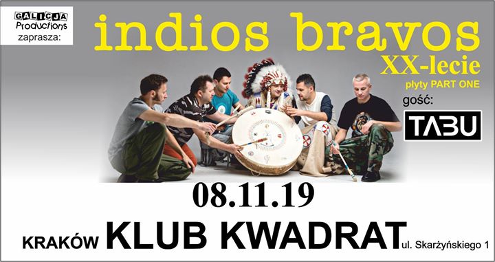 Bilety z systemu Going: https://goingapp.pl/evt/2108628/indios-bravos-xx-lecie-tabu