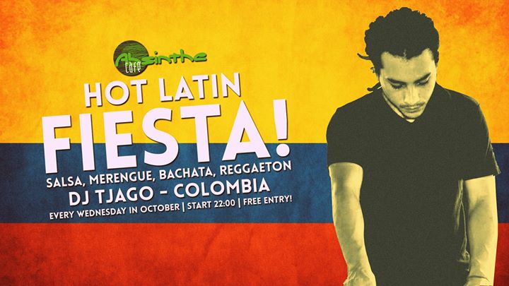 MIĘDZYNARODOWA HOT Latin Fiesta wraca do Gdańska na cały październik! Cafe Absinthe w każda środe zaprasza wszystkich na impreze z DJ-em Tjago z Kolumbii ! Przyjdź i rozszalej sie do najgorętszej latynoskiej muzyki w Trójmieście.