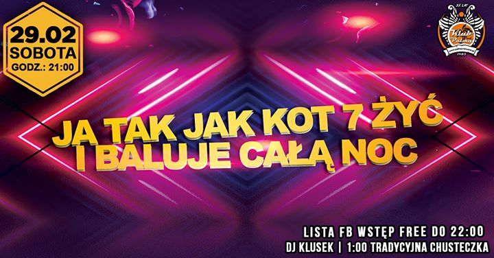 To wydarzenie sygnujemy nazwą „7 ŻYĆ” bo imprezujemy non stop… całą noc! Upadłeś? To powstań i baw się dalej razem z nami!