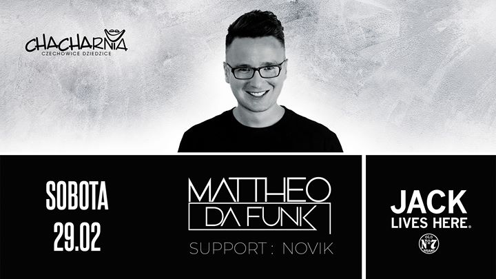 🔴⚫️ MATTHEO DA FUNK 🙋♂️ dj, producent, organizator imprez. Za konsolą od 14 lat. Ma za sobą niezliczoną ilość występów w klubach w różnych częściach kraju. Jego sety i produkcje to zaskakujący mix wszystkiego, co w muzyce HOUSE najlepsze. W latach 2013 – 2019 rezydent legendarnego klubu GRANT w Pszczynie 🎶