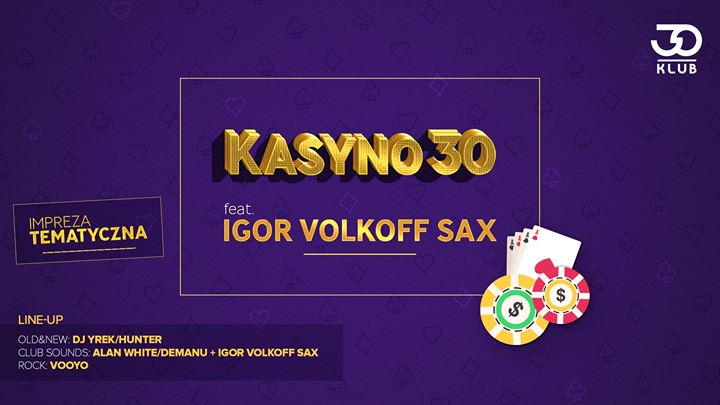 25 stycznia nasz klub zamieni się w prawdziwe kasyno! Kolejna wyjątkowa impreza tematyczna stanie się faktem. Dodatkowo na sali CLUB SOUNDS zadebiutuje IGOR VOLKOFF SAX!
