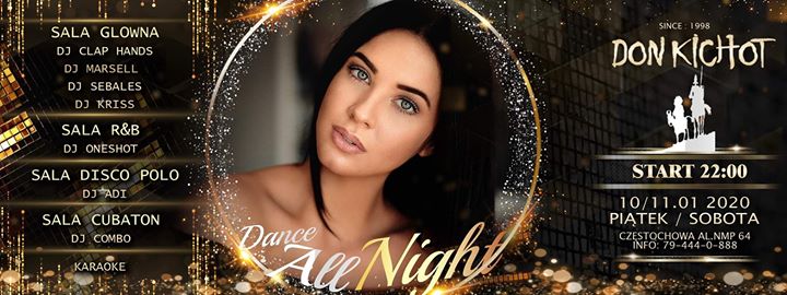 Relaks i miła atmosfera to podstawa każdego weekendu. Chcemy zapomnieć o stresach minionego tygodnia i dać się porwać przyjemnym doznaniom. Wszystkich, pełnych energii do spożytkowania, spragnionych gorącej klubowej atmosfery zapraszamy do Klubu Don Kichot. Czekaja na was najlepsze, kuszace drinki w mega promocyjnych, gorących cenach, przygotowane przez profesjonalną, zawsze czującą imprezę- Ekipę Don Kichota .Przestrzeń wypełnią gorące dźwięki oraz znane i lubiane przez wszystkich muzyczne hity prezentowane przez naszych rezydentów. Przyjazny wystrój i profesjonalna obsługa, stworzą niepowtarzalną atmosferę. Sala Dance, Sala RnB, Sala Latino, Sala Karaoke, Sala Disco Polo – cały lokal do Państwa dyspozycji.