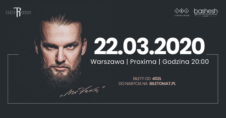 W związku z obecną sytuacją koncert zostaje przeniesiony na 07.06.2020. Bilety zachowują ważność. Wszelkie informacje na temat zwrotu biletów zostaną przekazane drogą mailową przez biletomat.pl