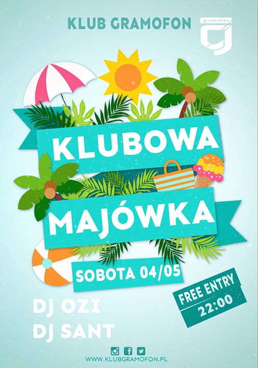 Majowka Klubowa czyli dlugi weekend czas podsumować na sobotniej imprezie w klubie Gramofon. Dobra zabawa i cieple klubowe brzmienia od oziego i santa rozgrzeja was na maxa bo pogoda ponoc ma byc slaba. Zapraszamy