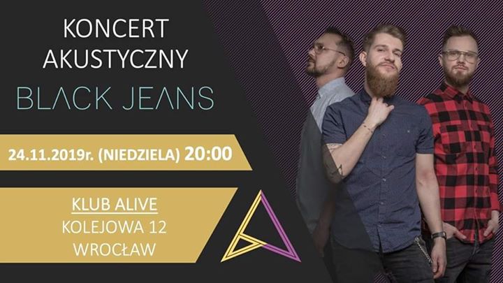 🔝🔝Już 24 listopada na scenie Klubu Alive we Wrocławiu wystąpi trio z zespołu BLACK JEANS w składzie: