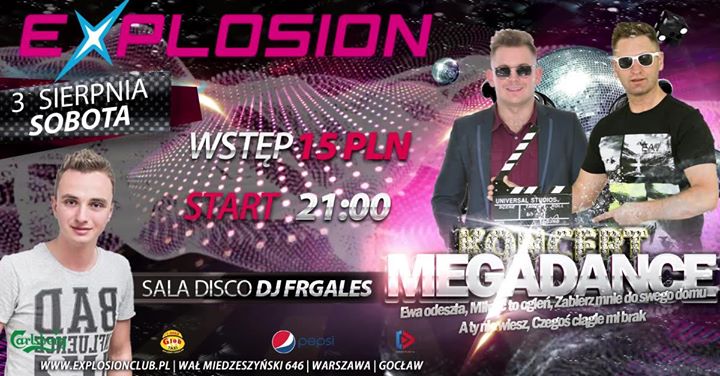 Koncert Mega Dance, Dj Fragles Night4U 6 lat temu Kiedy 03.08.2019 - 04.08.2019 21:00 - 06:00 Dodaj do kalendarza Pobierz ICS Kalendarz Google iCalendar Office 365 Outlook Live Gdzie Explosion Club Region mazowieckie W sobotę 3 sierpnia koncert zespołu MEGA DANCE !!! usłyszycie takie przeboje jak: „7 dni” „Ewa odeszła” „A Ty nie wiesz” „Czegoś ciągle mi brak” Za konsolą : Dj FRAGLES !!! data: 3 sierpnia początek g. 21.00 wstęp: 15 zł No related posts.
