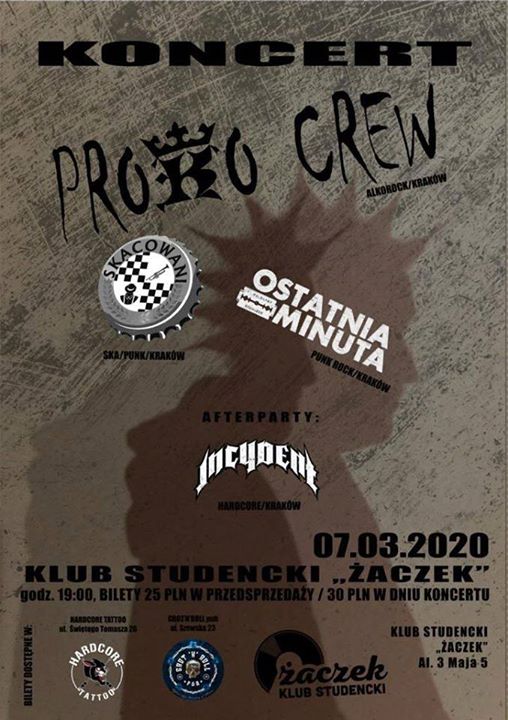 LINK DO STRONY Z BILETAMI : https://ekobilet.pl/klub-zaczek/proko-crew-1581517259682/403282-bilety-na-koncert