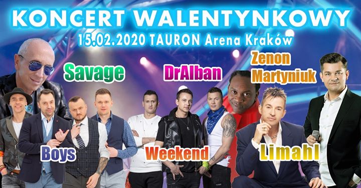 Już 15 lutego zapraszamy do TAURON Arena Kraków, gdzie wystąpią gwiazdy światowej i polskiej sceny muzycznej! Marzycie o zobaczeniu na żywo takich artystów jak Savage, Dr Alban, Limahl, Boys, Weekend czy Zenon Martyniuk? 🎶 Z nami to możliwe! Podaruj swojej drugiej połówce romantyczny wieczór razem z nami! 💓